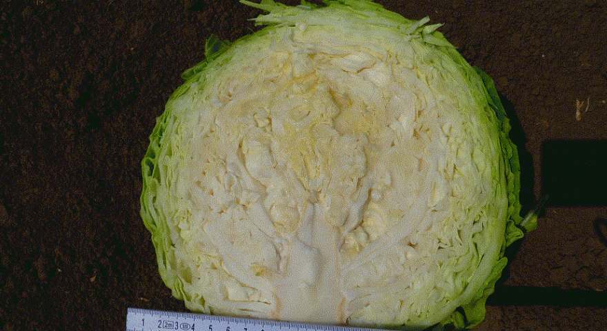 Раннеспелость, чрезвычайная однородность, великолепный внешний вид, очень высокая плотность кочанов, превосходная сохраняемость на корню и толерантность к растрескиванию, широкое «окно уборки», благодаря быстро формируемому кочану, продолжительная сохранность в срезанном виде. Пригоден для транспортировки на дальние расстояния. Правильной округлой формы с привлекательной зеленой окраской, чрезвычайно высокой однородности, массой 1 -2 кг. Чамп высокая нога, не подпревает — отличная капуста, все довольны.