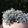 - Цинерария эффектное растение с ажурной серебристо-белой листвой, нетребовательно к уходу. Засухоустойчивое, светолюбивое и холодостойкое растение. Цветоносы появляются на второй год после посева — мелкие, желтого цвета, декоративной ценности не представляют, их удаляют в стадии бутона. Цинерария ценится именно за изумительную, серебряную окраску листьев, как фоновая культура в композициях с цветками ярких окрасок. Её используют для обрамления клумб, бордюров, рабаток, для украшения композиций летников в контейнерах, вазонах, горшках, балконных ящиках. однолетник.
